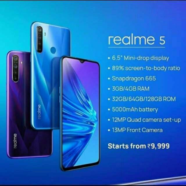 Versi paling rendah menggunakan RAM 3GB serta ROM 32GB varian ROM. Quad Camera 48MP AI dengan lensa Ultra Wide-angle dan Ultra Clear - Dare to leap to quad-camera. Spesifikasi Lengkap RealMe 5.